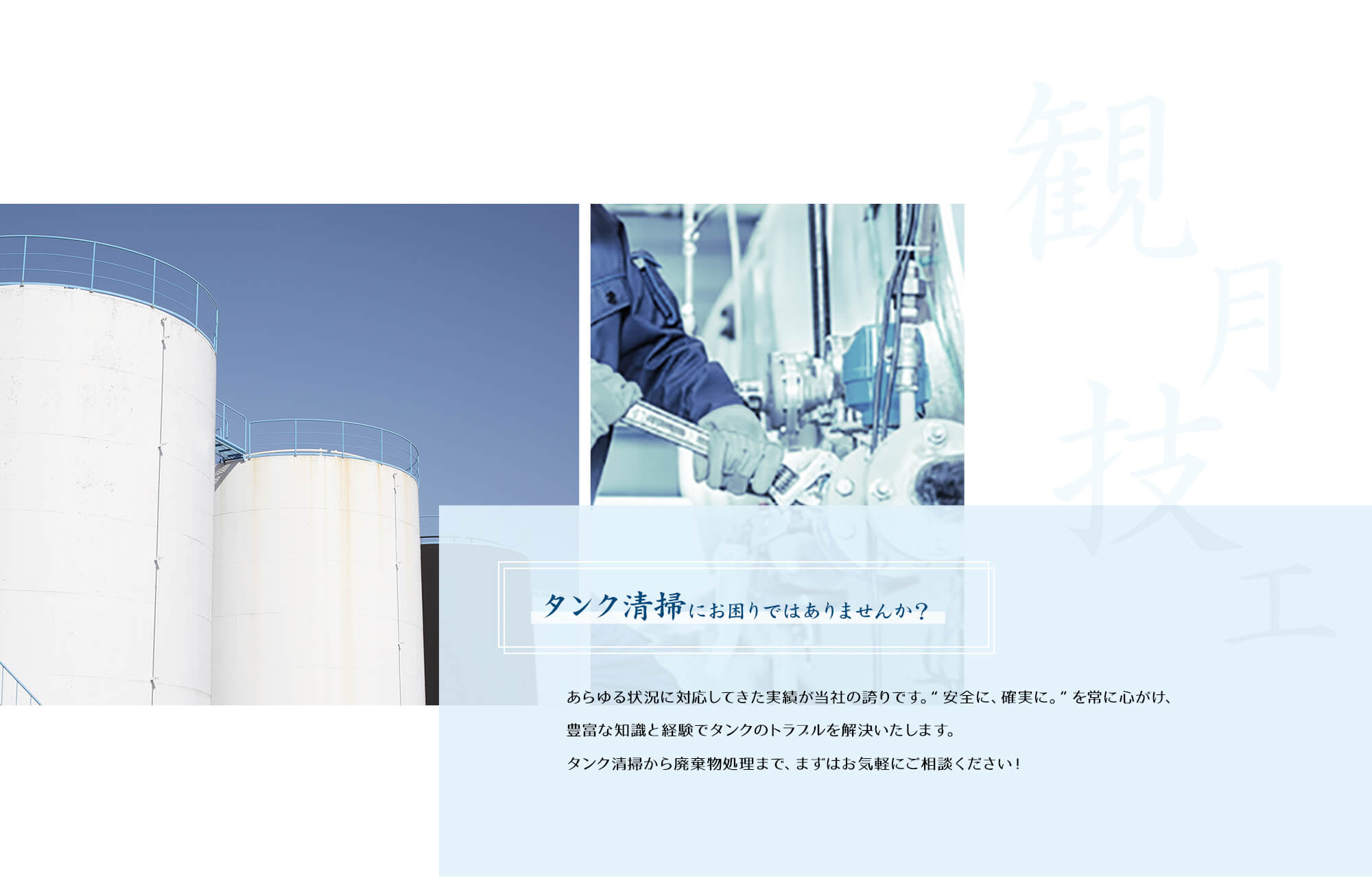 工事経歴 | 原料タンク内清掃、点検及び補修 工場内床防塵塗装 Φ50Aエアー配管敷き設 工場内遊休施設解体 自転車ラック設置 タンク内部FRP塗装 外部側溝付設 Φ80A蒸気配管補修 ETC関連工事(土木部門) 防災無線(鉄塔基礎工事) |
